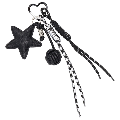 Geef je tas een stijlvolle twist met de Beagles Bag Charm in zwart-wit. Deze elegante charm combineert een speelse ster met een gedraaide gevlochten bal, afgewerkt met glanzende zilverkleurige hardware voor een chique touch.