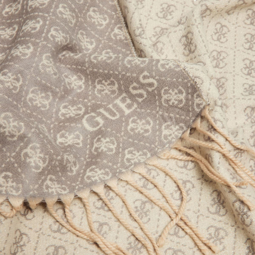 Op zoek naar een sjaal die je outfit naar een hoger niveau tilt? Dan is deze zachte Guess sjaal precies wat je nodig hebt. Het iconische Guess logo siert de gehele sjaal, wat 'm direct herkenbaar maakt en een vleugje luxe toevoegt aan je dagelijkse look. De sjaal is ontworpen met een slimme dubbelzijdige kleurstelling: de ene kant is grijs met beige en de andere kant is beige met grijs. Dit maakt 'm niet alleen veelzijdig, maar ook perfect om je stijl af te wisselen zonder dat je meer dan één accessoire hoeft mee te nemen.