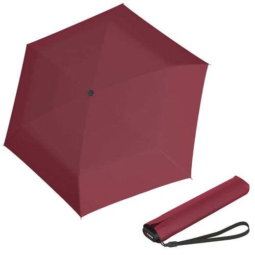 In Nederland kan het soms aardig veel regenen en stormen. Een goede paraplu is daarom echt een must! De Knirps paraplu uit de US 050 Ultra Light Slim collectie helpt jou voortaan om het natte weer te trotseren. Door het fijne formaat als de paraplu dicht is past hij makkelijk in je tas. Hij weegt ook niet veel, dus je zal het bijna niet merken dat je de paraplu bij je hebt. Bovendien is deze paraplu in vele leuke kleuren te verkrijgen, zoals deze mooie kleur rood. Deze paraplu open je handmatig, door het mechanisme naar boven te duwen, totdat de paraplu open is en vast blijft zitten. Hem dicht doen is ook erg simpel, je duwt het mechanisme gewoon naar beneden totdat hij helemaal dicht is.