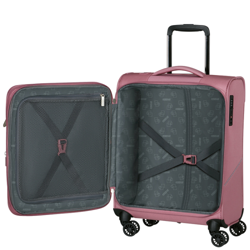 Reis met een gerust hart dankzij het ingebouwde TSA-cijferslot. Dit slimme sluitsysteem stelt douanemedewerkers in staat je American Tourister handbagage koffer veilig te openen voor inspectie zonder het slot te beschadigen. Ideaal voor strenge veiligheidscontroles op luchthavens. Het hoofdcompartiment heeft een ruim vak met inpakriemen om je kleding op zijn plaats te houden. Aan de andere zijde een mesh ritsvak met gekruiste inpakriemen voor je andere spullen.