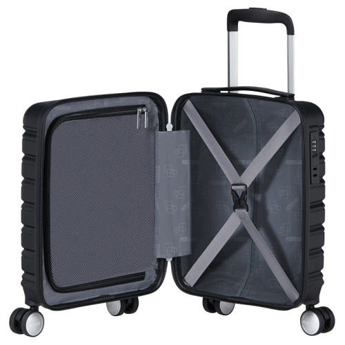 Maak kennis met de stijlvolle en praktische American Tourister Flashline in elegant zwart! Deze handbagage koffer is jouw ideale reisgenoot, klaar om elk avontuur met gemak en flair te begeleiden.