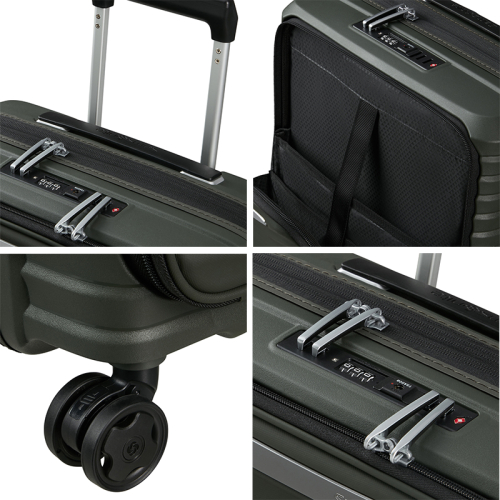 Ga op avontuur met de Samsonite Upscape handbagage koffer met laptopvak! Deze koffer in groen polypropyleen weegt slechts 2.6 kg, dus je kunt zorgeloos reizen.
