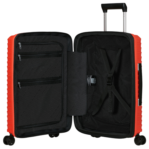 Ben jij klaar voor avontuur? Maak kennis met onze nieuwe Samsonite Upscape collectie, waar speels design en moeiteloos inpakken samenkomen. Met zijn golvend patroon aan de voorkant en opvallende oranjee kleur brengt Upscape enthousiasme in elke reis. Gemaakt van robuust, waterbestendig polypropyleen, biedt deze handbagagekoffer duurzaamheid en bescherming voor al jouw spullen. De gerecyclede PET voering is zelfs wasbaar, waardoor de koffer altijd een frisse binnenkant heeft.