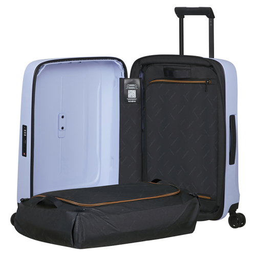 Deze lichte, harde koffer in het paars is van de Samsonite Essens serie en brengt kwaliteit die je van het merk verwacht. De koffer weegt 2,5 kg en is gemaakt van 70% gerecycled polypropyleen. De voering is gemaakt van gerecyclede petflessen. Samsonite geeft vier strips mee die het vakje midden op de voorkant kunnen vullen. Zo kan je je eigen draai geven aan de koffer!