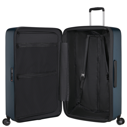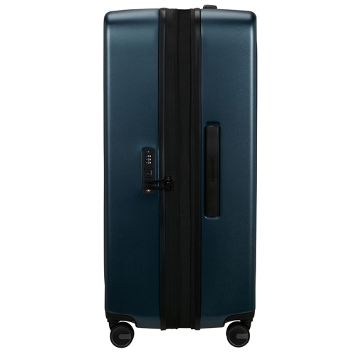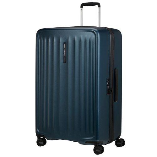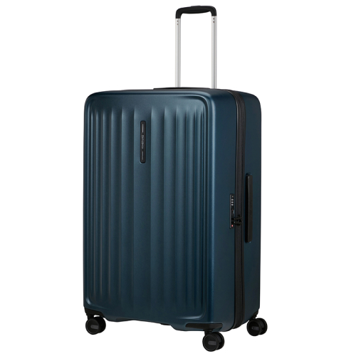De Samsonite FYRM is een harde koffer in blauw, vervaardigd uit stevig polycarbonaat. Met een gewicht van slechts 3,9 kg is hij licht en toch duurzaam, ideaal voor comfortabel reizen.