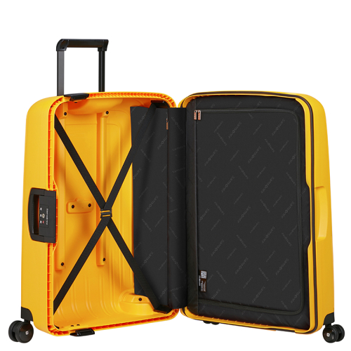Deze Samsonite harde koffer in de kleur geel behoort tot de SCure collectie. De koffers uit de SCure collectie zijn ultra lichte polypropyleen koffers van 4.2 kg. Ze worden namelijk gemaakt met Flowlite materiaal. Dit materiaal maakt zeer dunne injecties in de mal mogelijk, terwijl de schaal stevig blijft en een optimale bescherming biedt aan de spullen in de koffer. Deze collectie wordt vervaardigd in Europa.