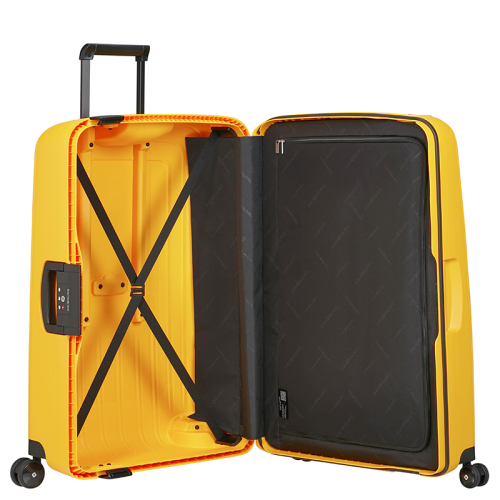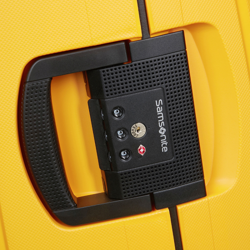Deze Samsonite harde koffer in de kleur geel behoort tot de SCure collectie. De koffers uit de SCure collectie zijn ultra lichte polypropyleen koffers van 4.6 kg. Ze worden namelijk gemaakt met Flowlite materiaal. Dit materiaal maakt zeer dunne injecties in de mal mogelijk, terwijl de schaal stevig blijft en een optimale bescherming biedt aan de spullen in de koffer. Deze collectie wordt vervaardigd in Europa.