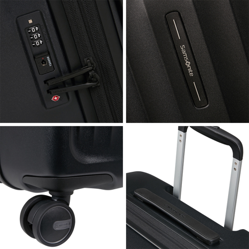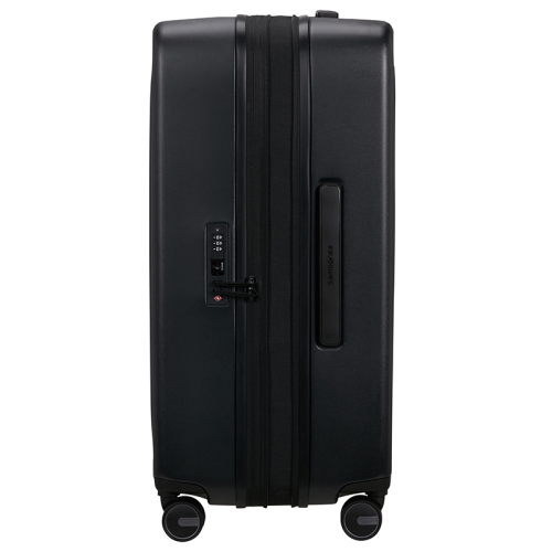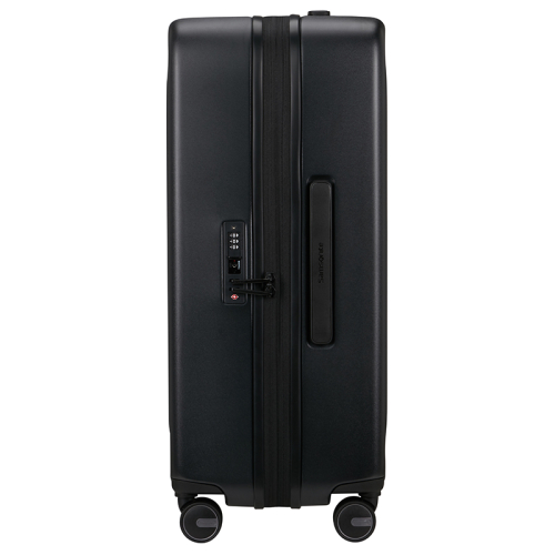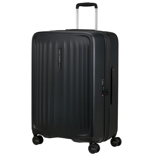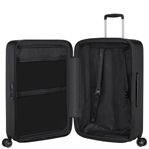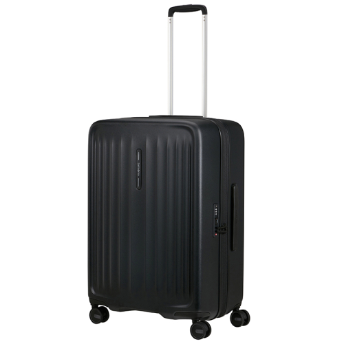 De Samsonite FYRM is een harde koffer in zwart, vervaardigd uit stevig polycarbonaat. Met een gewicht van slechts 3,3 kg is hij licht en toch duurzaam, ideaal voor comfortabel reizen.