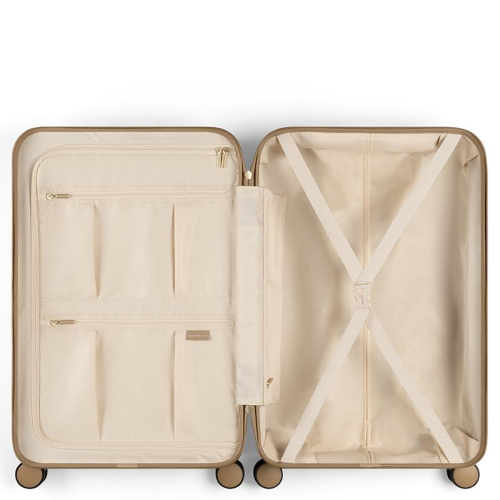 Dankzij het ritsvlak met twee ritsvakken en je spullen georganiseerd kunt opbergen. De andere kant heeft spanbanden. Met een totale capaciteit van 59 liter is deze koffer perfect voor een trip van één tot twee weken.