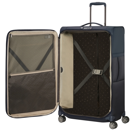 Met een inhoud van 111,5 liter, uitbreidbaar tot 120 liter, biedt deze koffer voldoende ruimte voor al je essentials. De voorkant heeft een handig steekvak, terwijl het interieur is voorzien van twee paar spanbanden en twee ritsvakken.
