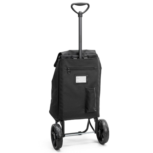 Deze boodschappentrolley is een meesterwerk van functionaliteit. Het ruime hoofdcompartiment biedt genoeg ruimte voor al je boodschappen en sluit veilig af met een trekkoordsluiting en een handige sluitklep. Achterop de trolley vind je zowel een ritsvak als een steekvak, perfect voor de spullen die je snel nodig hebt. Daarnaast is er een speciaal vak voor personalisatie, zodat je je trolley helemaal eigen kunt maken.
