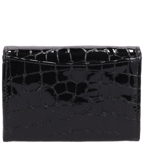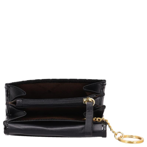 De Verona sleuteletui van Braun Buffel is een compact en elegant accessoire, uitgevoerd in glanzend zwart lakleer met crocoprint en verfijnde goudkleurige hardware. Een chique blikvanger met een luxe uitstraling.