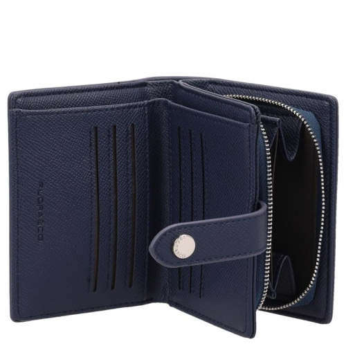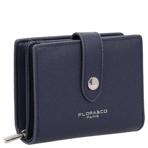 De Flora & Co Angelina is een elegante portemonnee in blauw met een verfijnde leren look. De zilverkleurige hardware geeft een moderne touch. Het compacte ontwerp past perfect bij elke tas.