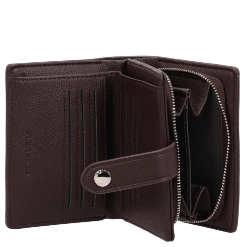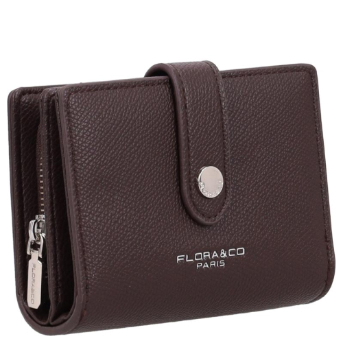 De Flora & Co Angelina is een elegante portemonnee in bruin met een verfijnde leren look. De zilverkleurige hardware geeft een moderne touch. Het compacte ontwerp past perfect bij elke tas.