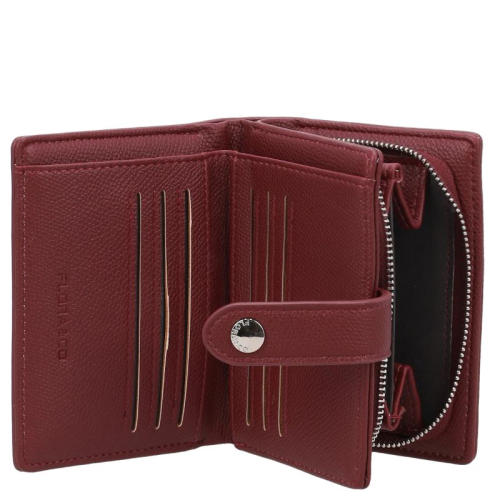 De Flora & Co Angelina is een elegante portemonnee in rood met een verfijnde leren look. De zilverkleurige hardware geeft een moderne touch. Het compacte ontwerp past perfect bij elke tas.