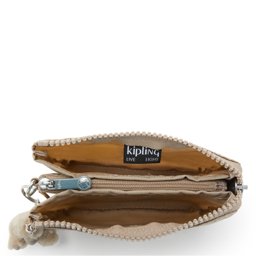De Kipling portemonnees zijn eenvoudig qua indeling. Deze variant uit de Creativity S collectie is taupe, wat vrolijkheid schept. Ook hangt hier het kenmerkende aapje rond. Onder de ritssluiting vind je twee steekvakken en een ritsvak.
