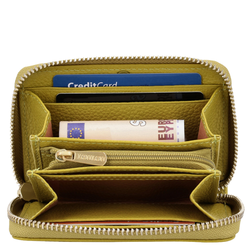 Klein maar fijn! Deze groene leren portemonnee van Loulou Essentiels, collectie Petite Emilie is gemaakt van mooi generfd leer, vervaardigd in een BCSI gecertificeerd atelier met hart voor mens en milieu. Aan de voorzijde vind je een klein steekvakje, terwijl een ritsvakje aan de achterzijde ideaal is voor je muntgeld.