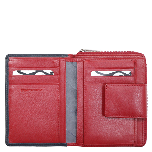 De Riccardo Ferducci De Medici portemonnee is een echte eyecatcher van hoogwaardig blauw leer met rode accenten, afgewerkt met schitterende zilverkleurige hardware. Dit juweeltje komt van het Oostenrijkse merk Riccardo Ferducci, bekend om zijn luxe accessoires die klasse en vakmanschap uitstralen. Met deze ritsportemonnee in jouw bezit, waan je jezelf in de top van de modewereld.