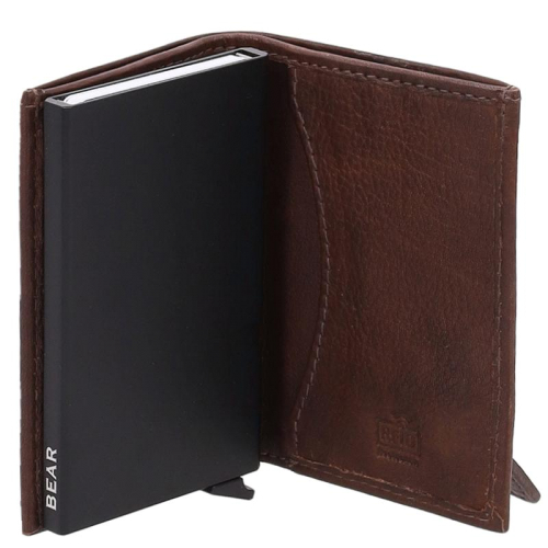 Ga voor de luxe, tijdloze pasjeshouder van Bear Design! Hij komt uit de Frits collectie en is gemaakt van bruin generfd leer. Het embossed logo op de voor- en achterkant geeft hem een chique touch.