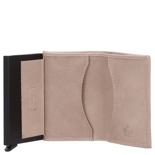 Deze compacte pasjeshouder is multifunctioneel. Naast de pasjeshouder voor 6 kaarten, kun je namelijk ook zonder moeite contant geld meenemen! Er bevindt zich namelijk bovenop een steekvak voor briefgeld en op de achterkant zit een ritsvak voor muntgeld. Bovendien kun je nog je twee belangrijkste kaarten kwijt in de daarvoor bestemde pasjesvakken.