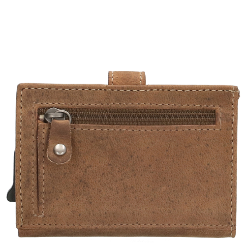 Hide & Stitches heeft ook pasjeshouders! Deze variant uit de Idaho collectie is bruin en is RFID beschermd. De pasjeshouder is met een drukknoop te openen. Eenmaal opengevouwen vind je het aluminium omhulsel waar zes pasjes in passen. Er zijn nog drie pasjesvakken, een steekvak en een ritsvak te vinden.