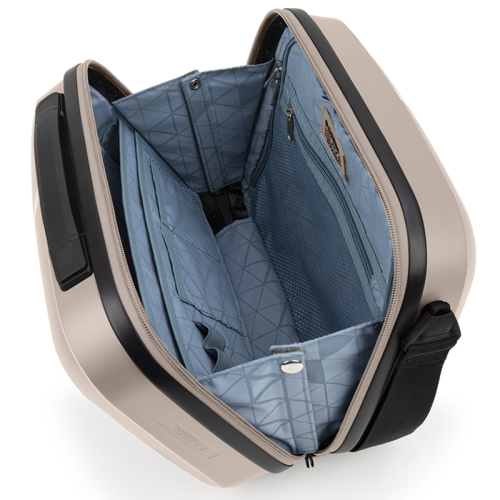 Je kunt de beautycase comfortabel dragen aan het handvat bovenop of met de afneembare, verstelbare schouderband. Daarnaast is de achterkant voorzien van een trolley sleeve, zodat je hem eenvoudig over het handvat van je koffer kunt schuiven.
