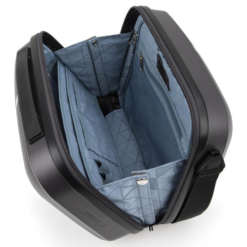 Je kunt de beautycase comfortabel dragen aan het handvat bovenop of met de afneembare, verstelbare schouderband. Daarnaast is de achterkant voorzien van een trolley sleeve, zodat je hem eenvoudig over het handvat van je koffer kunt schuiven.