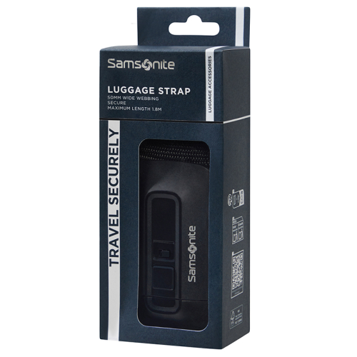 Een bagageriem komt altijd van pas als extra veiligheidsmaatregel om jouw volle koffer ook vol te houden. Deze bagageriem van Samsonite is uitgevoerd in het zwart en is voorien van het Samsonite logo. De bagageriem heeft een stevige kliksluiting en is verstelbaar voor tassen tot 182 cm.