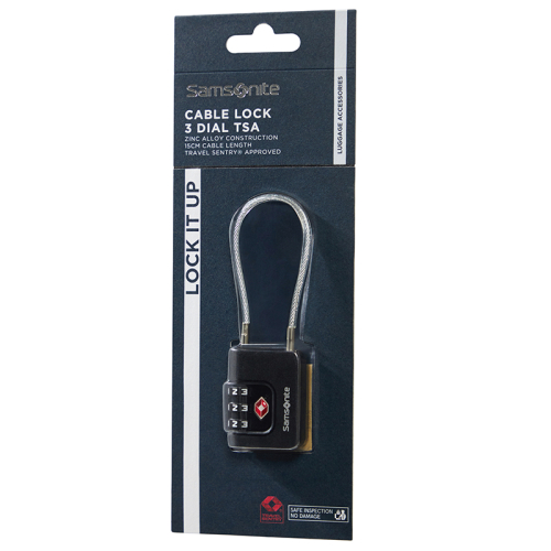 Het Samsonite kofferslot heeft een compact en modern ontwerp dat niet alleen praktisch is, maar ook stijlvol oogt. De stevige kabel zorgt voor flexibiliteit bij het bevestigen, waardoor het slot geschikt is voor verschillende soorten koffers en reistassen.