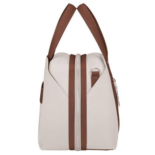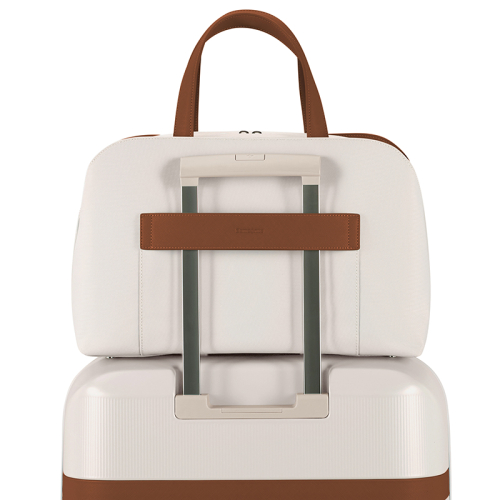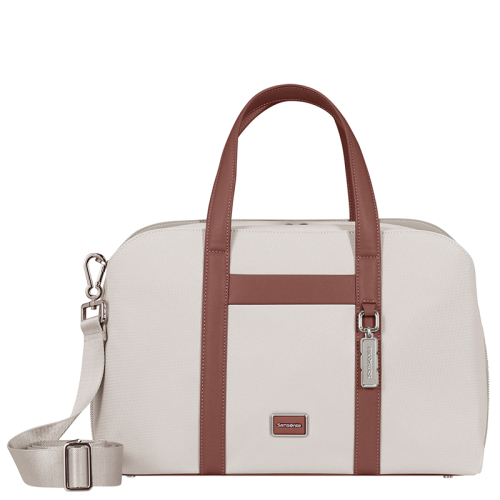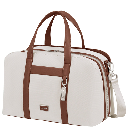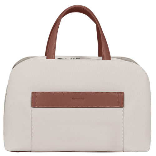 De Samsonite Image Biz is een elegante werktas zonder wielen, uitgevoerd in beige met verfijnde bruine details en zilverkleurige hardware, waaronder een stijlvolle bag charm. Het strakke ontwerp en de hoogwaardige afwerking maken deze tas tot een professionele metgezel voor onderweg.