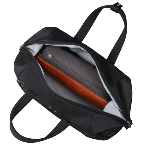 Gebruik de stevige handvaten (samen te klikken met een drukknoop), de verstelbare afneembare schouderband of de handige trolley sleeve voor extra gemak.