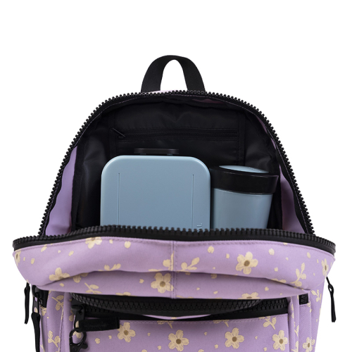 Ben jij al bekend met de Lila Flower? Dat is de rugzak van Little Legends! Bowie heeft een printje van bloemetjes met een goudkleurig stipje en een leuke rubberen bloemhanger. Dit maakt de tas net even anders en orgineel. De rugzak heeft één hoofdcompartiment , één groot voorvak en een kleiner voorvak. Alle drie hebben ze een ritssluiting. De rugzak is daarnaast comfortabel te dragen door de gewatteerde schouderbanden die verstelbaar zijn. Extra handig: op de achterzijde van de tas is een speciale plek voor jouw naam en telefoonnummer. Aan de onderkant vind je ook nog een extra ritsvakje met daarin een regenhoes, zodat jouw tas droog aankomt op school!