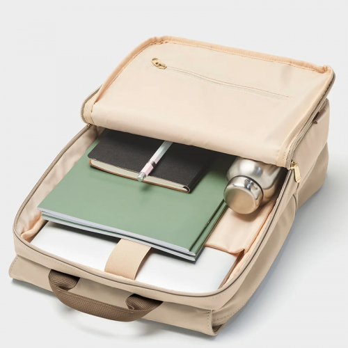 Dit model heeft een klepsluiting met magneet. Dan bevat hij aan beide kanten een hoofdcompartiment met ritssluiting. De rugtas heeft twee comfortabele schouderbanden die je kunt verstellen en bevestigen aan de kant die jouw voorkeur heeft. Om de tas snel in de hand te dragen, heeft dit model een draaghengsel bovenaan.