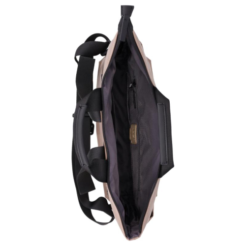 Het hoofdcompartiment sluit met een rits en biedt een overzichtelijke indeling. Binnenin vind je een ritsvak en drie steekvakken waarvan één speciaal voor een pen. Daarnaast is er een gevoerd laptopvak geschikt voor een 15 inch laptop. Veilig en praktisch voor onderweg.