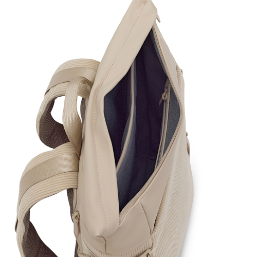 De Kapten & Son Helsinki Cord rugtas heeft een minimalistische uitstraling in zowel vorm als kleur, doordat hij volledig is uitgevoerd in zacht beige. De combinatie van zacht corduroy en glad kunststof zorgt voor verfijnde texturen en geeft de tas een speelse dimensie met een moderne, stijlvolle uitstraling.