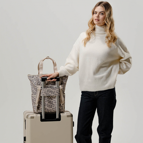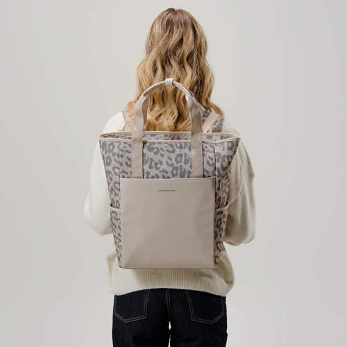 Deze tas is bovendien veelzijdig in draagstijl: je kunt hem dragen als handtas dankzij de stevige handvaten, die je met een drukknoopstrook netjes bij elkaar kunt houden. Of kies voor de rugzakoptie met verstelbare schouderbanden. Deze banden zijn aan de onderzijde los te maken en in het achtervak te schuiven, zodat je de tas eenvoudig als handtas kunt gebruiken – ideaal voor onderweg of op kantoor.