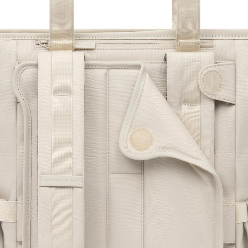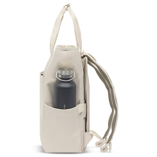 De buitenzijde van deze rugzak is ontworpen met jouw gemak in het achterhoofd. Aan de voorkant vind je een handig ritsvak, uitgerust met twee mesh steekvakken voor jouw dagelijkse benodigdheden. Aan beide zijkanten zijn er steekvakken, ideaal voor een flesje water of een compacte paraplu. De gewatteerde, verstelbare schouderbanden kunnen eenvoudig worden weggestopt achter een zacht paneel, bevestigd met velcro, voor een strakke look. Met dubbele handvatten bovenop en twee anti-diefstalvakken aan de achterkant, biedt deze tas zowel stijl als veiligheid. En als kers op de taart, is de tas waterafstotend en vervaardigd van gerecyclede PET-flessen, waardoor het ook een milieuvriendelijke keuze is.