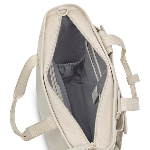 Binnenin deze verfijnde rugzak vind je een georganiseerde oase van ruimte en mogelijkheden. Het hoofdvak is eenvoudig toegankelijk via een stevige ritssluiting en biedt een speciaal 15 inch laptopvak en een 11 inch tabletvak, zodat al je apparaten veilig en klaar voor gebruik zijn. De binnenkant is vervaardigd van hetzelfde gerecyclede PET-materiaal als de buitenkant, wat bijdraagt aan de duurzaamheid van het product. Met een ritsvak en een fleshouder heb je genoeg ruimte voor al je spullen. Of je nu naar kantoor gaat of op een weekendavontuur, deze rugzak is jouw perfecte metgezel.