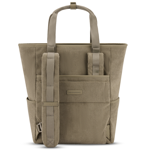 Deze tas is bovendien veelzijdig in draagstijl: je kunt hem dragen als handtas dankzij de stevige handvaten, die je met een drukknoopstrook netjes bij elkaar kunt houden. Of kies voor de rugzakoptie met verstelbare schouderbanden. Deze banden zijn aan de onderzijde los te maken en in het achtervak te schuiven, zodat je de tas eenvoudig als handtas kunt gebruiken – ideaal voor onderweg of op kantoor.