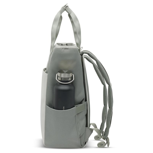 De buitenzijde van deze rugzak is ontworpen met jouw gemak in het achterhoofd. Aan de voorkant vind je een handig ritsvak, uitgerust met twee mesh steekvakken voor jouw dagelijkse benodigdheden. Aan beide zijkanten zijn er steekvakken, ideaal voor een flesje water of een compacte paraplu. De gewatteerde, verstelbare schouderbanden kunnen eenvoudig worden weggestopt achter een zacht paneel, bevestigd met velcro, voor een strakke look. Met dubbele handvatten bovenop en twee anti-diefstalvakken aan de achterkant, biedt deze tas zowel stijl als veiligheid. En als kers op de taart, is de tas waterafstotend en vervaardigd van gerecyclede PET-flessen, waardoor het ook een milieuvriendelijke keuze is.