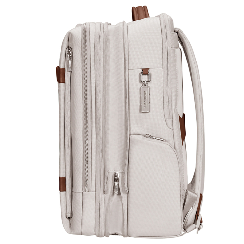 De Samsonite laptoprugzak straalt met zijn elegante beigekleur en warme bruine accenten. Deze stijlvolle rugzak is een meesterwerk uit de Image Biz collectie. Als pionier in de reiswereld, biedt Samsonite producten die zowel modieus als functioneel zijn. De zilverkleurige hardware voegt een vleugje luxe toe aan de algehele uitstraling, waardoor je met trots deze tas overal mee naartoe neemt.
