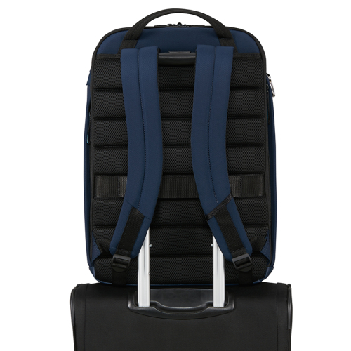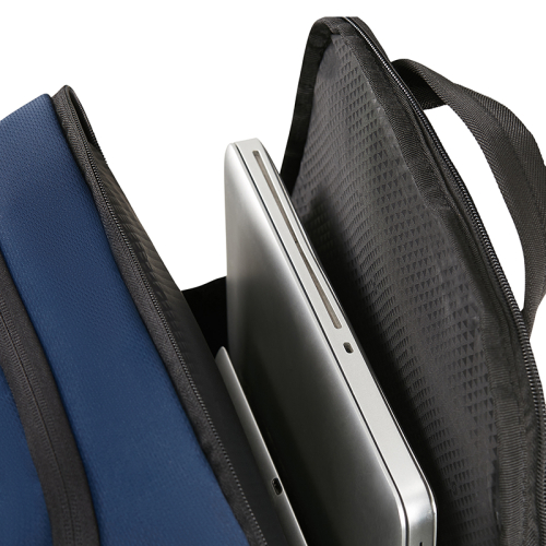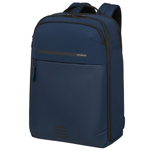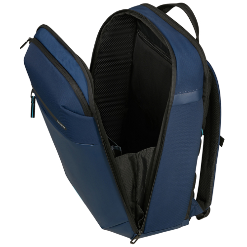 De Samsonite [MODEl} laptoprugzak is strak vormgegeven in blauw, met bijpassende zwartkleurige hardware. Een stijlvolle en professionele look die past bij elke werkdag of reis.