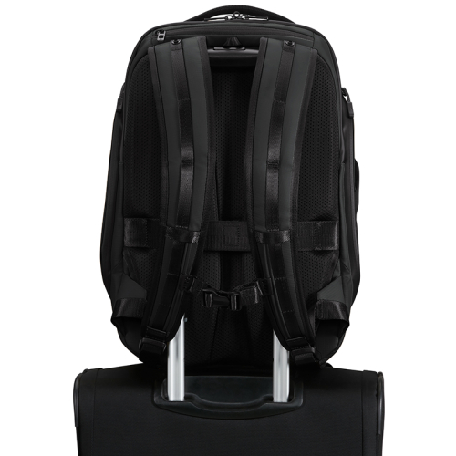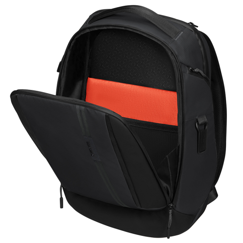 Aan de zijkant vind je een mesh steekvak voor een drinkfles. Aan beide zijkanten vind je twee ritsvakken waarvan één is voorzien van twee interne steekvakken. De achterkant heeft een extra ritsvak en een trolley sleeve voor eenvoudig meenemen op reis. De opbergbare schouderriemen zijn verstelbaar en kunnen aan elkaar worden vastgeklikt voor extra stabiliteit. De verstelbare borstriem bevat een handig ritsvak. Bovenop zit een laptopvak met ritssluiting en een extra steekvak binnenin.
