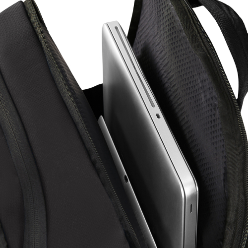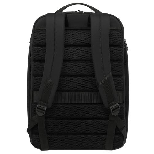 De Samsonite [MODEl} laptoprugzak is strak vormgegeven in zwart, met bijpassende zwartkleurige hardware. Een stijlvolle en professionele look die past bij elke werkdag of reis.