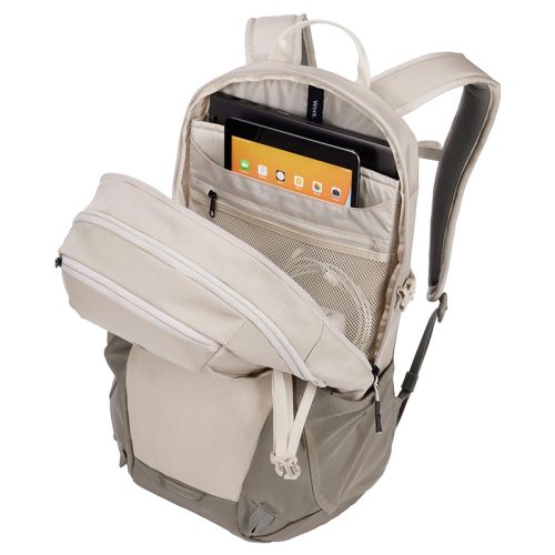 Ga erop uit met deze Thule EnRoute! Een strak ontworpen tas voorzien van alle praktische eigenschappen die je kan wensen. Dit model in de kleur beige is gemaakt van bluesign® goedgekeurd 400D nylon en 600D polyester. De verstelbare schouderbanden aan de achterkant zijn uitgevoerd met een elastische borstband en zorgen ervoor dat hij comfortabel te dragen is. Ook vind je aan de achterzijde een smartsleeve, waarmee jij hem voor extra gemak vast kunt maken aan je koffer. Aan de zijkanten zitten twee elastische steekvakken waar je eventueel een bidon in kwijt kan. Tot slot is deze rugtas aan de voorkant voorzien van meerdere bevestigingslussen waar je extra uitrusting aan kunt hangen. Er is dus aan alles gedacht om jouw outdoor trip optimaal te te laten verlopen!