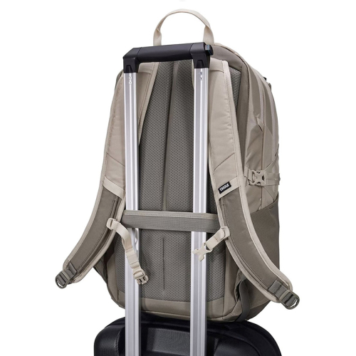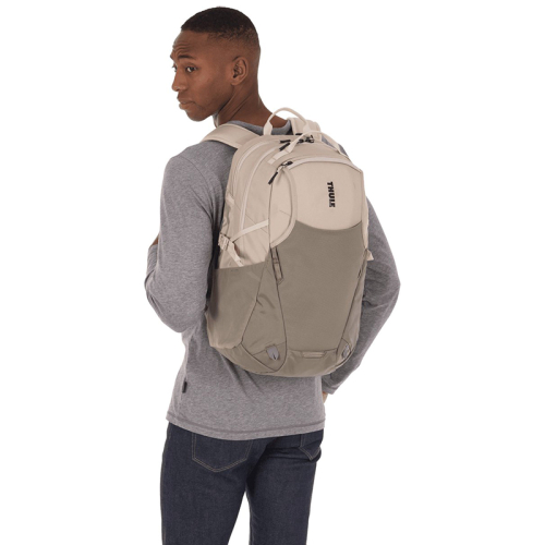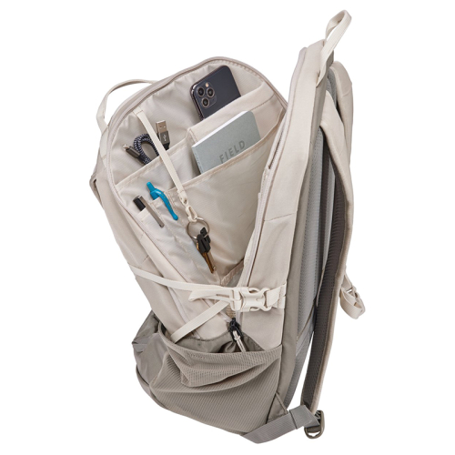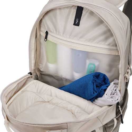 Met deze rugtas van Thule EnRoute ga jij voorbereid op avontuur. Er is aan elk opbergvakje gedacht! Dit model in de kleur beige is gemaakt van bluesign® goedgekeurd 400D nylon en 600D polyester. De verstelbare schouderbanden aan de achterkant zijn uitgevoerd met een elastische borstband en zorgen ervoor dat hij comfortabel te dragen is. Ook vind je aan de achterzijde een smartsleeve, zodat jij hem voor extra gemak vast kunt maken aan je koffer. Aan de zijkanten zitten twee elastische steekvakken waar je eventueel een bidon in kwijt kan. Genoeg drinken tijdens een lange reis is natuurlijk belangrijk! Tot slot is deze rugtas aan de voorkant voorzien van meerdere bevestigingslussen waar je extra uitrusting aan kunt hangen. Kortom; er is overal aan gedacht om jouw reis nog dragelijker te maken!