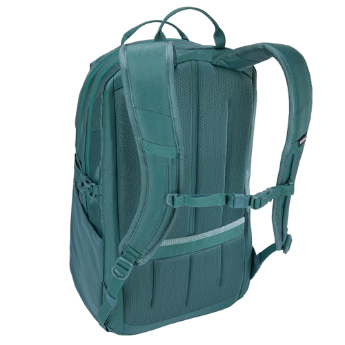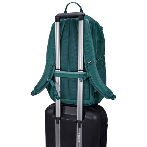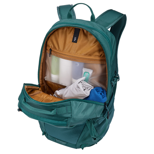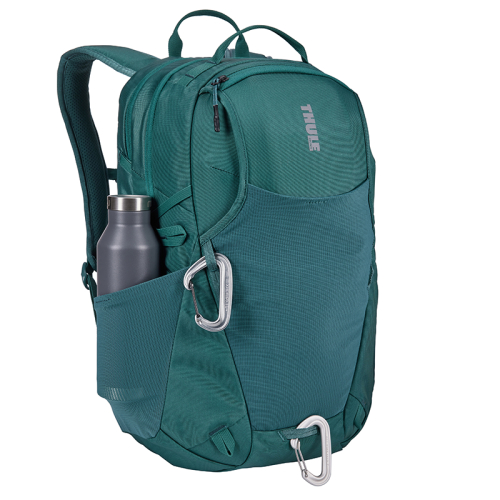 Met deze rugtas van Thule EnRoute ga jij voorbereid op avontuur. Er is aan elk opbergvakje gedacht! Dit model in de kleur groen is gemaakt van bluesign® goedgekeurd 400D nylon en 600D polyester. De verstelbare schouderbanden aan de achterkant zijn uitgevoerd met een elastische borstband en zorgen ervoor dat hij comfortabel te dragen is. Ook vind je aan de achterzijde een smartsleeve, zodat jij hem voor extra gemak vast kunt maken aan je koffer. Aan de zijkanten zitten twee elastische steekvakken waar je eventueel een bidon in kwijt kan. Genoeg drinken tijdens een lange reis is natuurlijk belangrijk! Tot slot is deze rugtas aan de voorkant voorzien van meerdere bevestigingslussen waar je extra uitrusting aan kunt hangen. Kortom; er is overal aan gedacht om jouw reis nog dragelijker te maken!