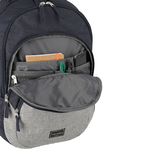 Aan de voorkant van de Basics rugtas vind je drie handige ritsvakken. Het middelste vak is slim ingericht met drie steekvakken, een mesh ritsvak en twee pennenlussen, waardoor je al je essentials netjes kunt organiseren. De rekbare steekvakken aan de zijkant zijn perfect voor je waterfles of een compacte paraplu. En met het handige handvat bovenop, neem je deze tas moeiteloos overal mee naartoe. De verstelbare schouderbanden en het gewatteerde rugpaneel zorgen ervoor dat je altijd comfortabel reist. Met deze tas ben je altijd stijlvol én voorbereid.