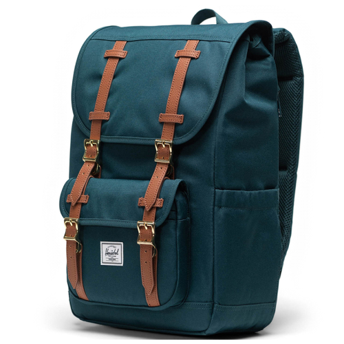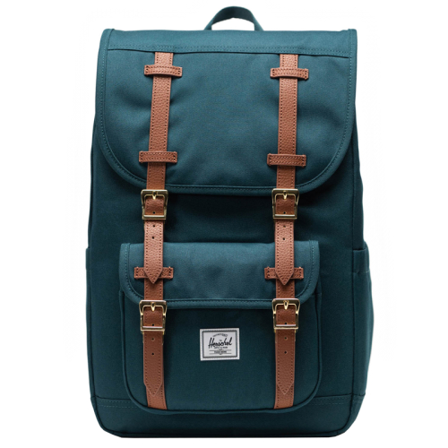 Deze Herschel rugzak in het groen biedt talloze praktische opbergmogelijkheden.Het ruime hoofdcompartiment heeft plek voor jouw 15"/16" computer. Met een ruim voorvak en een handige magneet- en ritssluiting heb je snel toegang tot je kleinere benodigdheden. Daarnaast heeft de rugzak twee steekvakken aan de zijkant om je waterflesjes veilig op te bergen. Het goudkleurige hardware geeft de tas een luxe uitstraling. Met zijn iets compactere formaat is deze Little America Mid Volume rugzak perfect voor dagelijks gebruik.