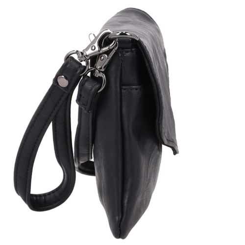 De Wimona Alessandra clutch is een stijlvolle en veelzijdige tas in elegant zwart. Dit model, gemaakt van hoogwaardig kunstleer, combineert tijdloos design met praktische functies. Perfect als clutch, schoudertas of crossbodytas voor elke gelegenheid!